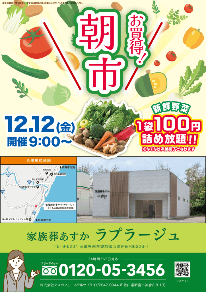 【御浜町】11/7(金)朝市開催のお知らせ(家族葬あすか ラプラージュ)