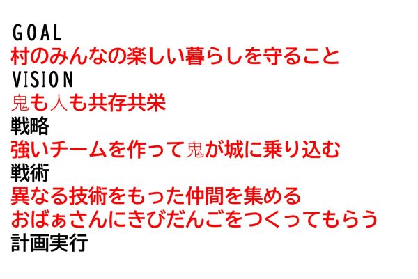 鬼退治は、手段であり、ビジョン達成への戦略にすぎません。