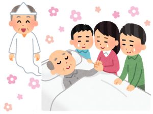 あなたは自宅に帰り、お釈迦様のところへ無事にいけるようにと北向きに寝ています。