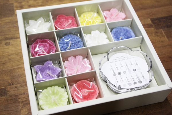 仏事salon明日ノ空で、季節のお花の形の12ヶ月蝋燭を取り扱っています。