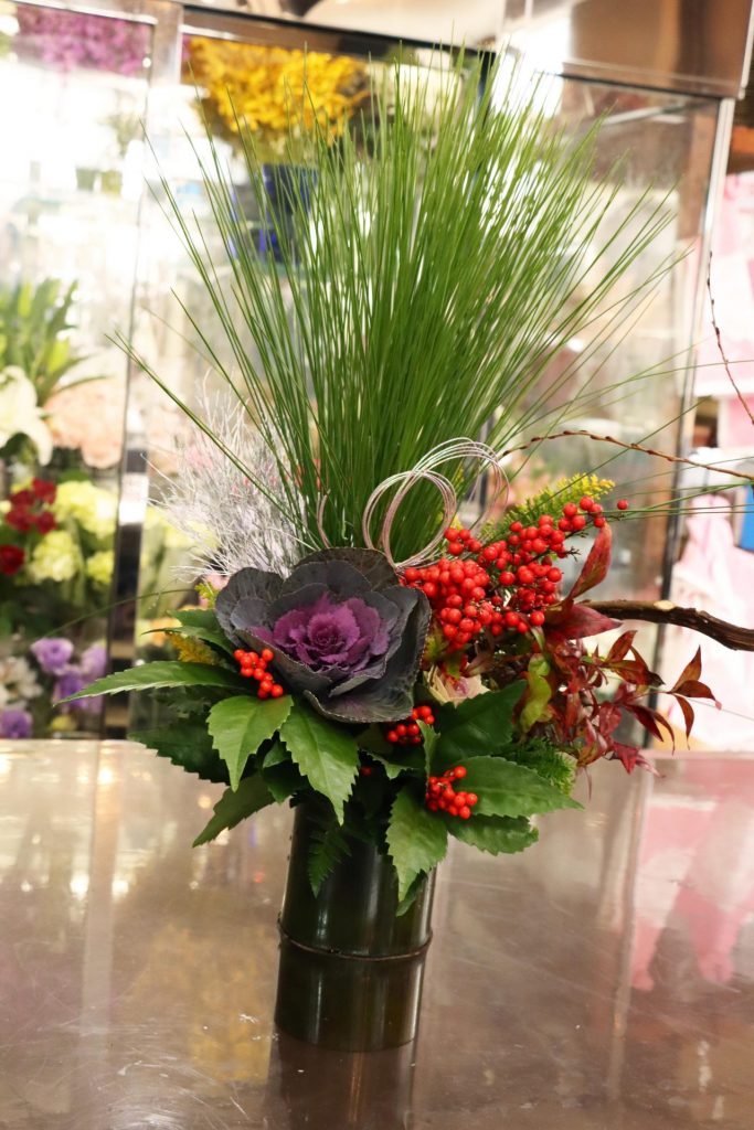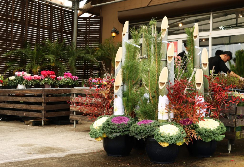 お花の撮影の時は年末で、東花園にも角松やしめ縄などが並んでお正月の雰囲気でした。