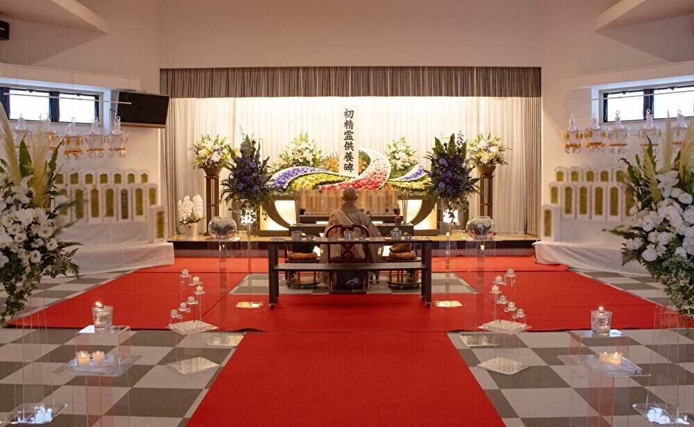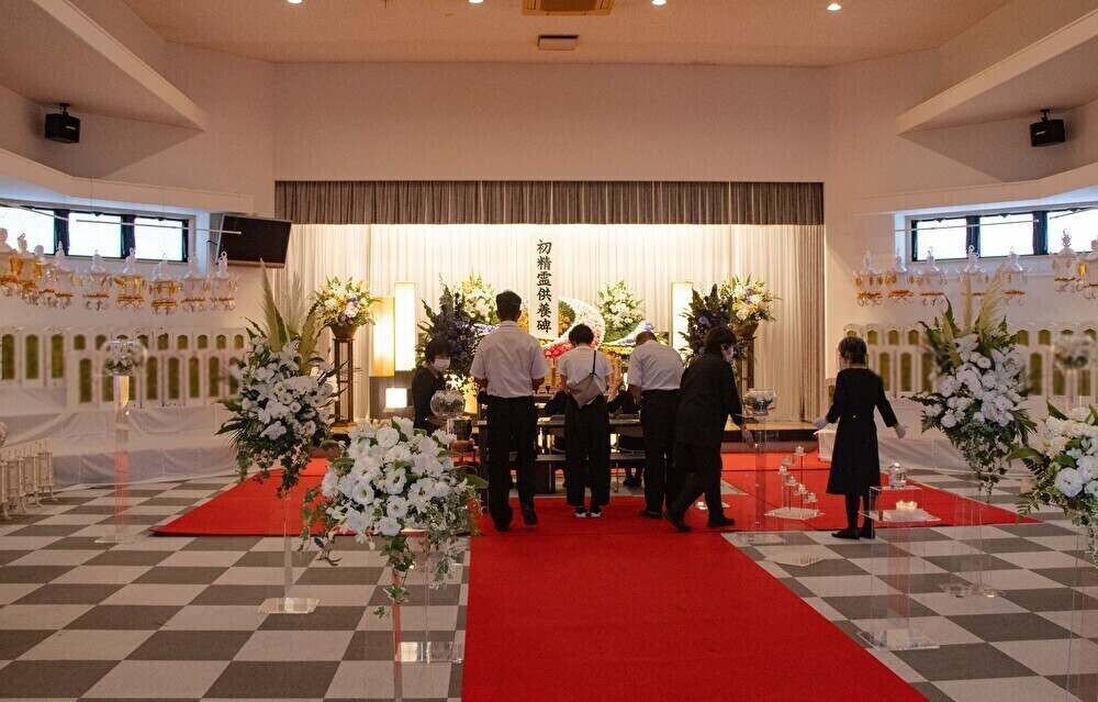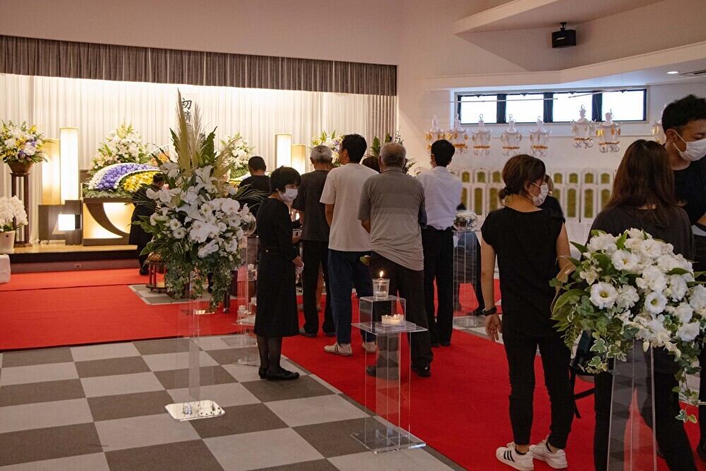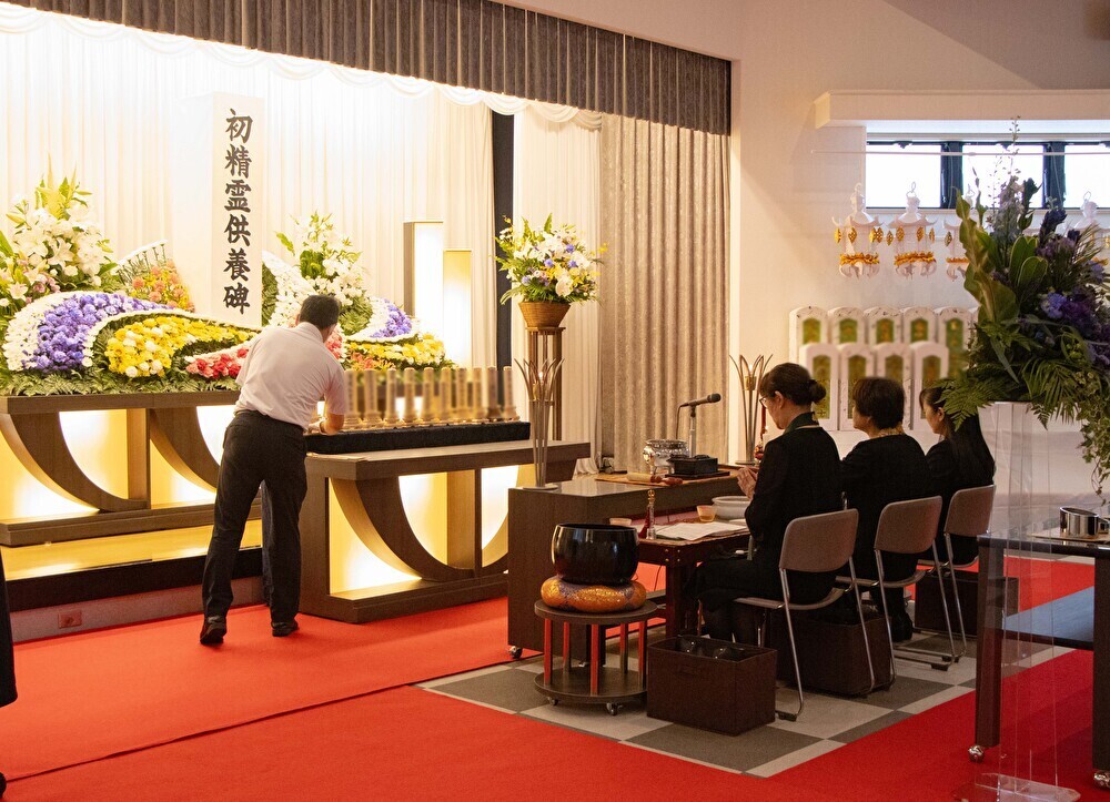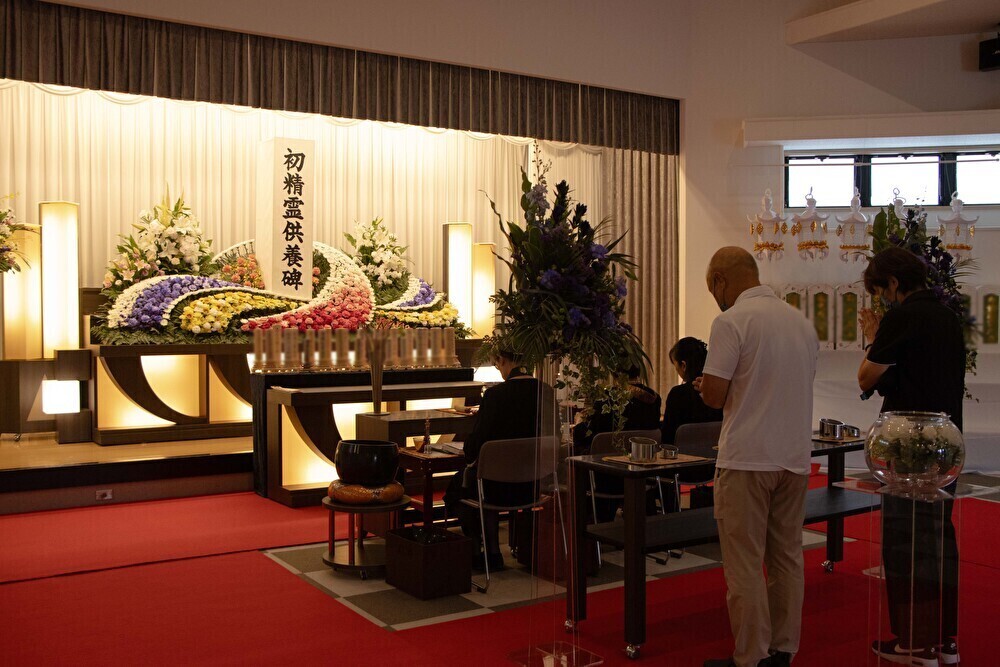 普門山 松巖院ご住職によるお読経と、高野山金剛講の皆さまから御詠歌を賜り、初盆供養を迎えられるご家族様や親族様は、祭壇前の焼香所にて手を合わせ、故人様を偲ばれました。