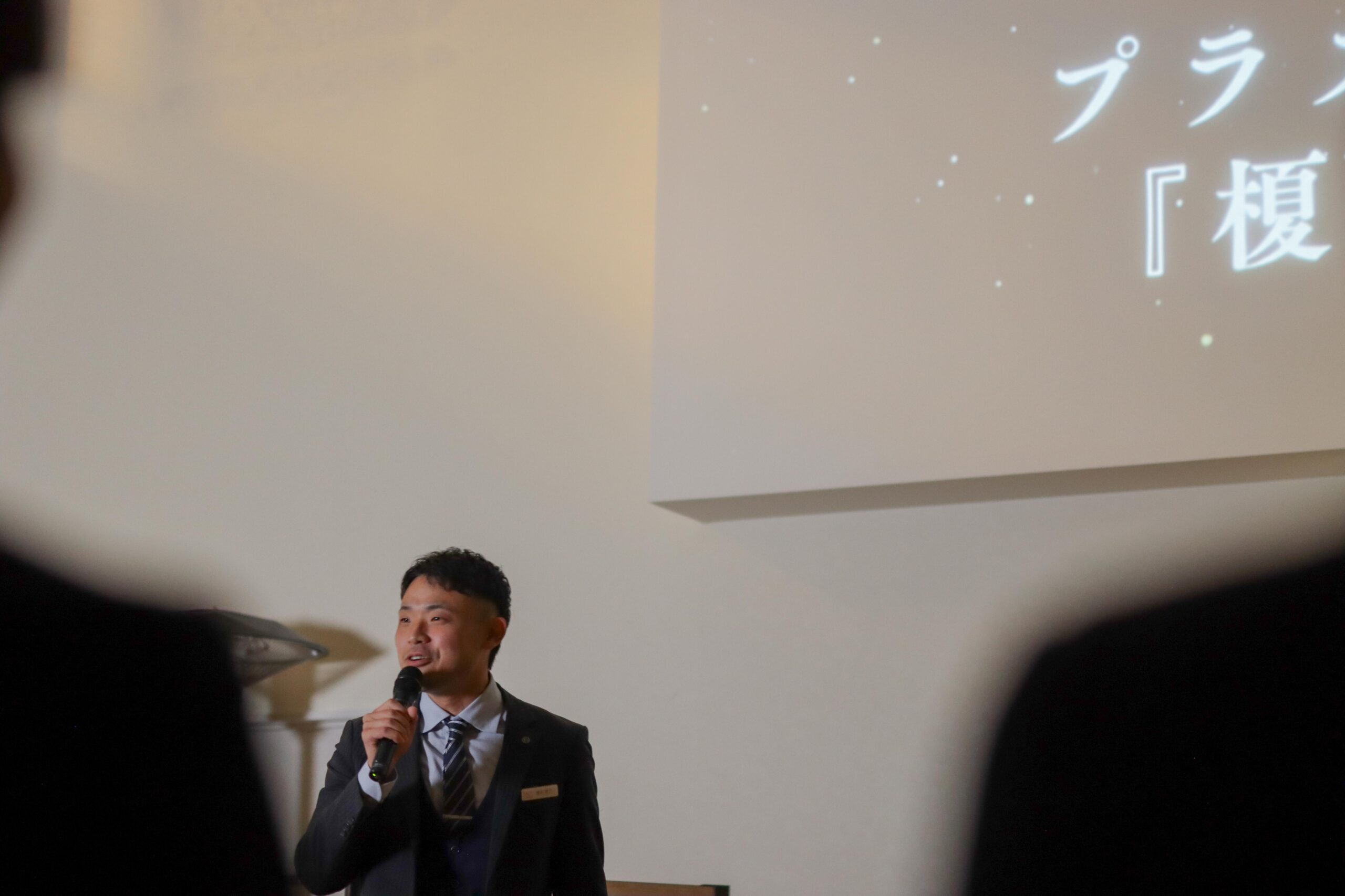経営計画発表会で使用したスライドは、みんなに分かりやすく伝わるようプレゼン発表者がお互いにフィードバックしあい何度も修正を重ねました。