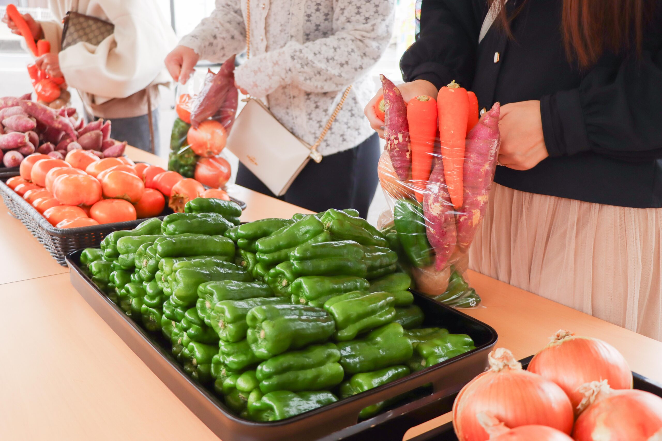 皆様、それぞれのスタイルで次々と袋に野菜を詰めていらっしゃいました。