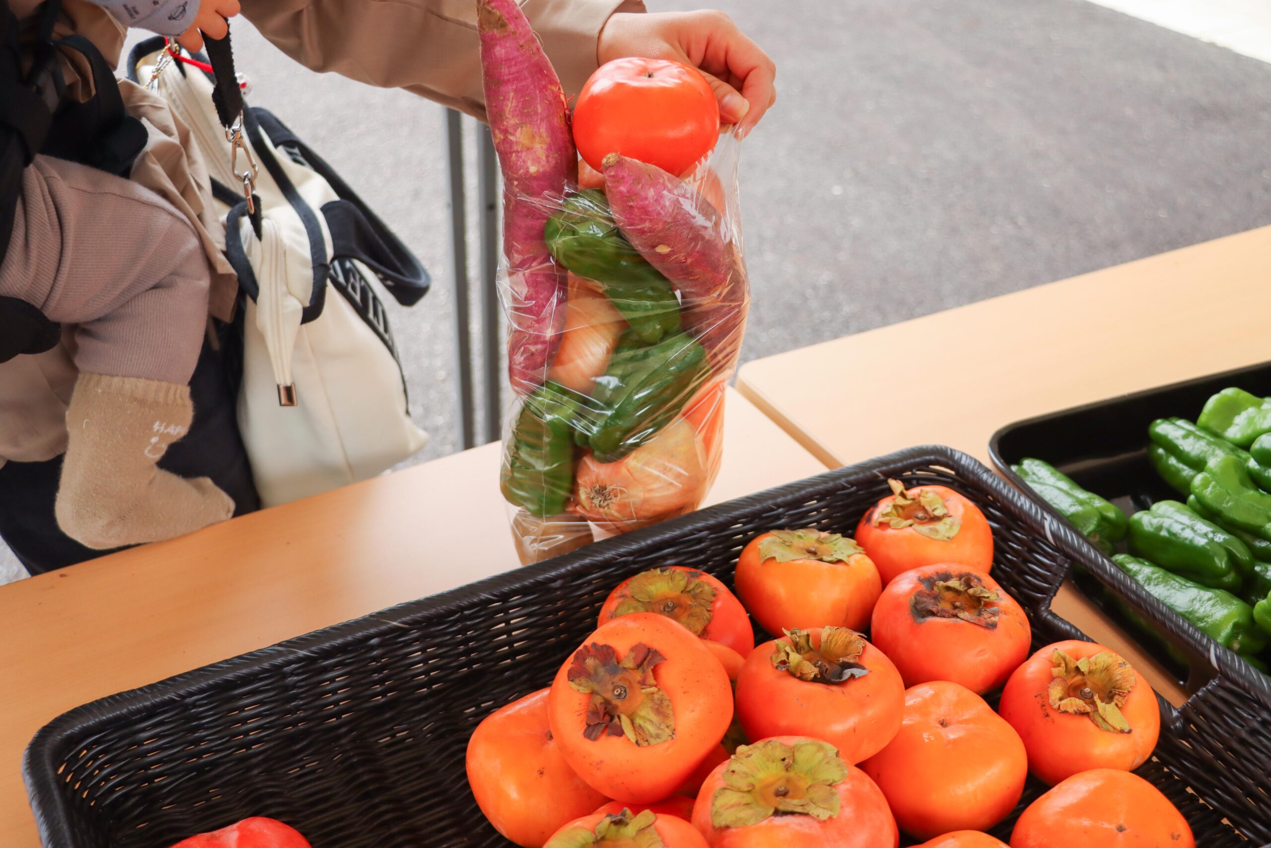 今回は人参・じゃがいも・サツマイモ・ピーマンのお野菜に加え柿もご用意しました☺️