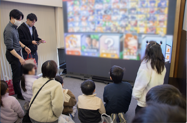 同じく餅まき菓子まき終了後に、会場内で大きなLEDビジョンを活用して、お子様向けにゲーム体験コーナーを設置しました。