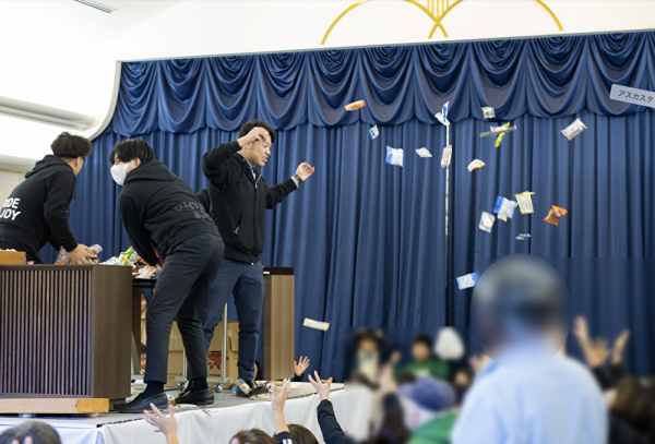 いざ、餅まき菓子まきがスタート✨会場内のテンションが一気に上がります!