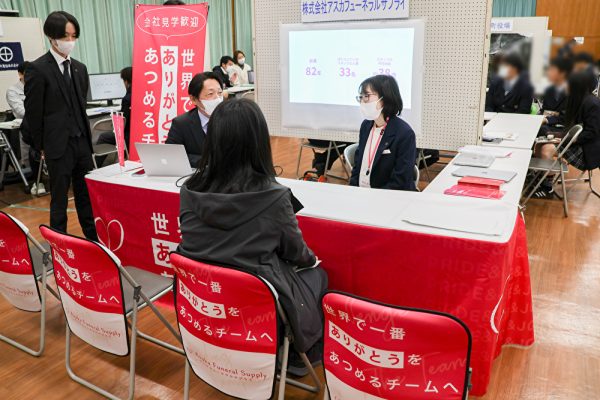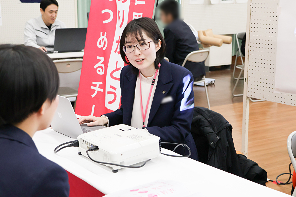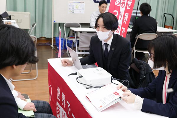 当日の午前中は一般の求職者の方々を対象に開催し、午後は2部制で、高校生の皆様を対象に企業説明のお時間を各15分ほどいただきました。