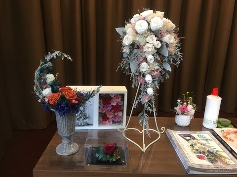 写真左の月状の形をしたアレンジが珍しく、思わず持って帰りたくなるくらい可愛らしかったです!