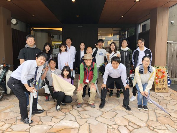 出発前に本日ご同行いただく新宮市の語り部、岡本様を囲んで本社前にて記念撮影。