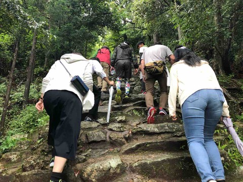 出発直後はワイワイと賑やかに歩いていたスタッフも、いざ神倉神社に上り始めると会話が消えて徐々に無言に…。初めて神倉神社に上るスタッフもいました。