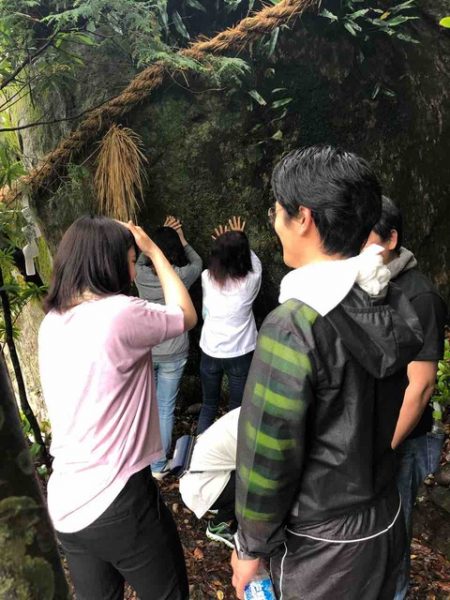 無事、到着!当日は、他県の方や海外の方もお参りに来られていました。ゴトビキ岩に触れてパワーをいただきます。