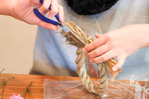 道具はハサミやペンチ、フローラルテープ、ワイヤー、グルーガンを使用しました。