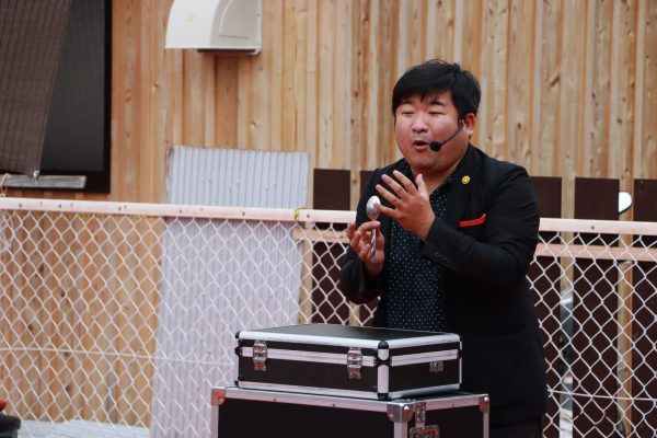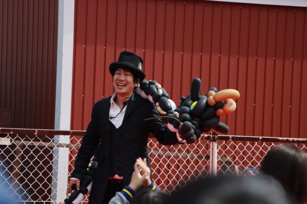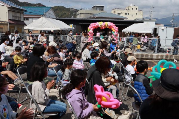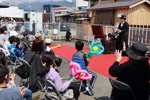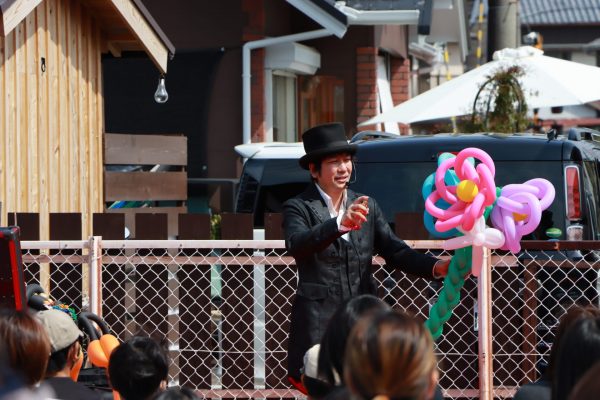 大道芸ショーでは、バルーンパフォーマーAKIさんとスマイルクリエイター鈴木さんが迫力のステージを披露。