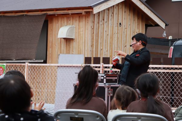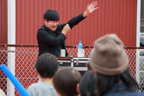 スマイルクリエイター鈴木さんによる軽快なトークと様々な道具を使ったパフォーマンスに、会場は大盛り上がり。