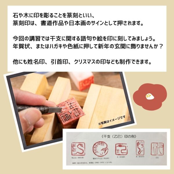 2024年11月10日(日)に、弊社式場「家族葬あすか 沙羅双樹」にて篆刻(てんこく)講習会が開催されます。