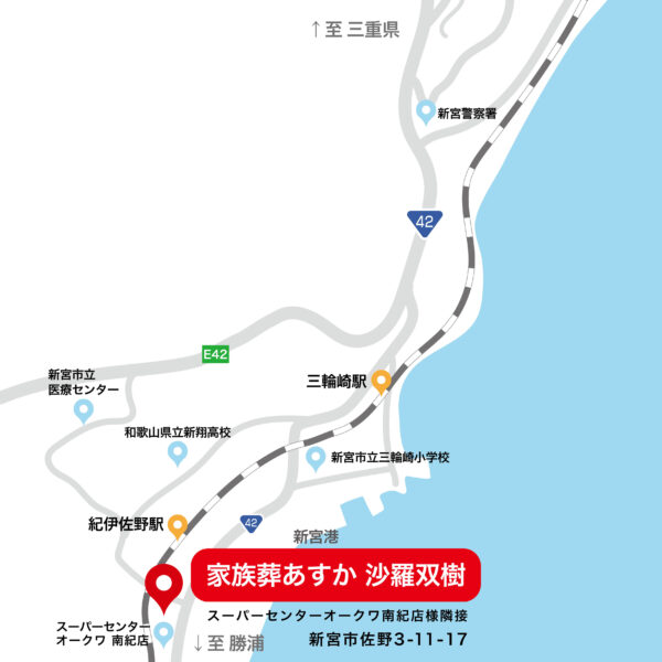 【場所】 家族葬あすか 沙羅双樹(和歌山県新宮市佐野3-11-17)