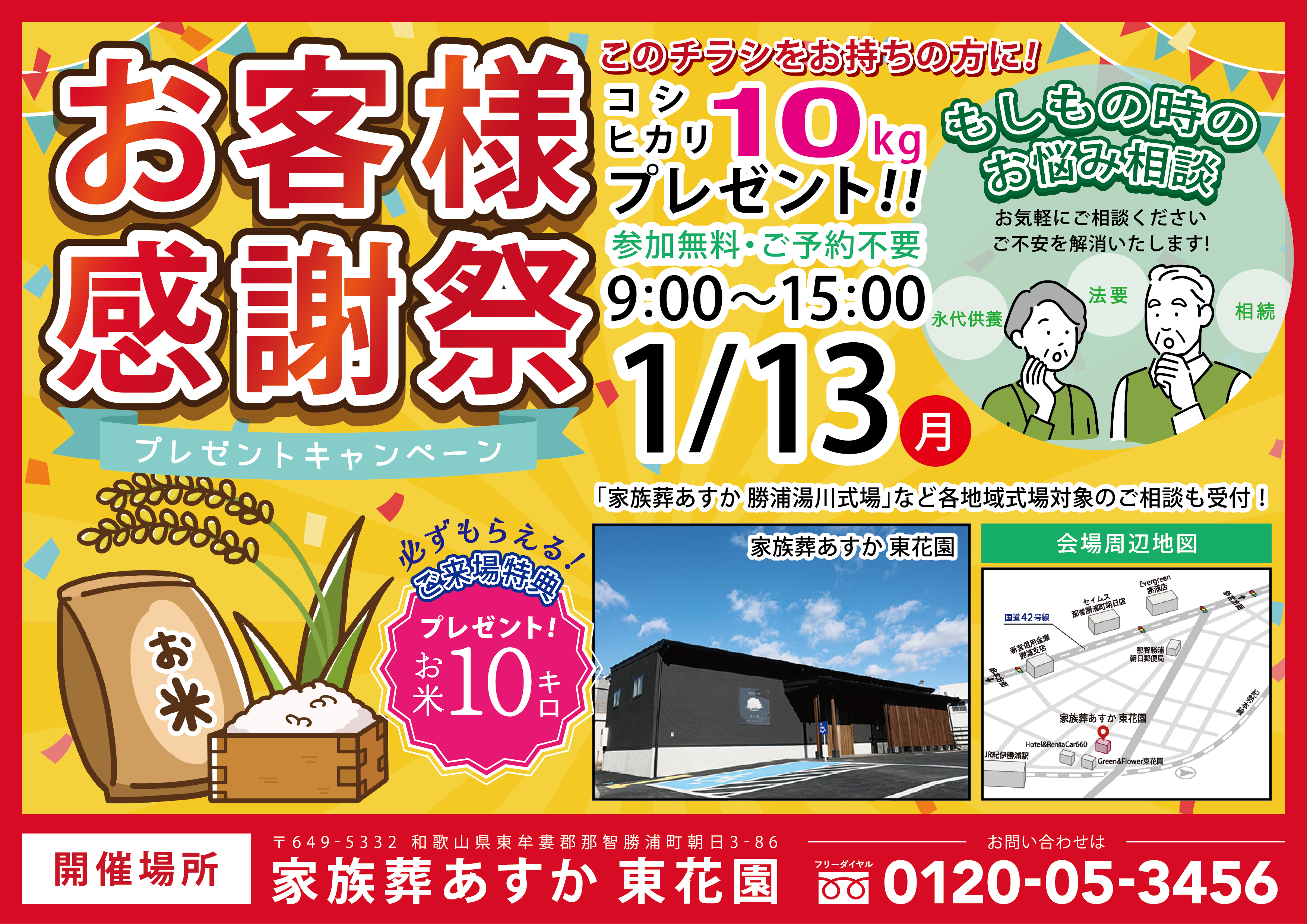 【御浜町阿田和】1/13(月)「お客様感謝祭」開催のお知らせ(来場特典:お米10kg)