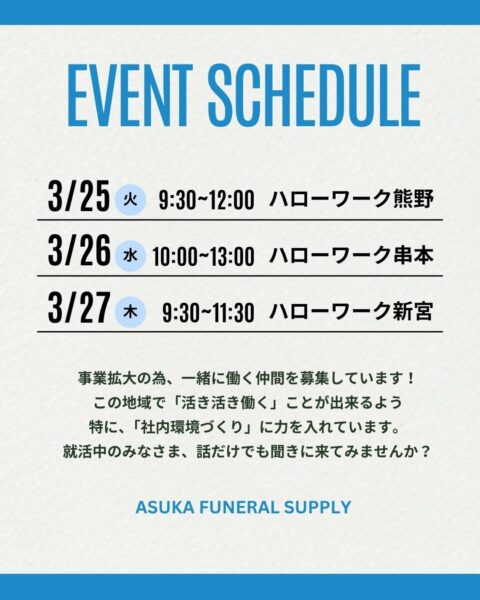 2025年3月26日(水)に、ハローワーク串本にて会社説明会を開催いたします。