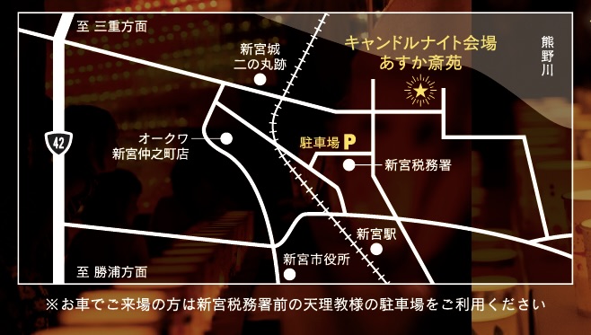 ※お車でご来場の方は、新宮税務署前の天理教様の駐車場をご利用ください。