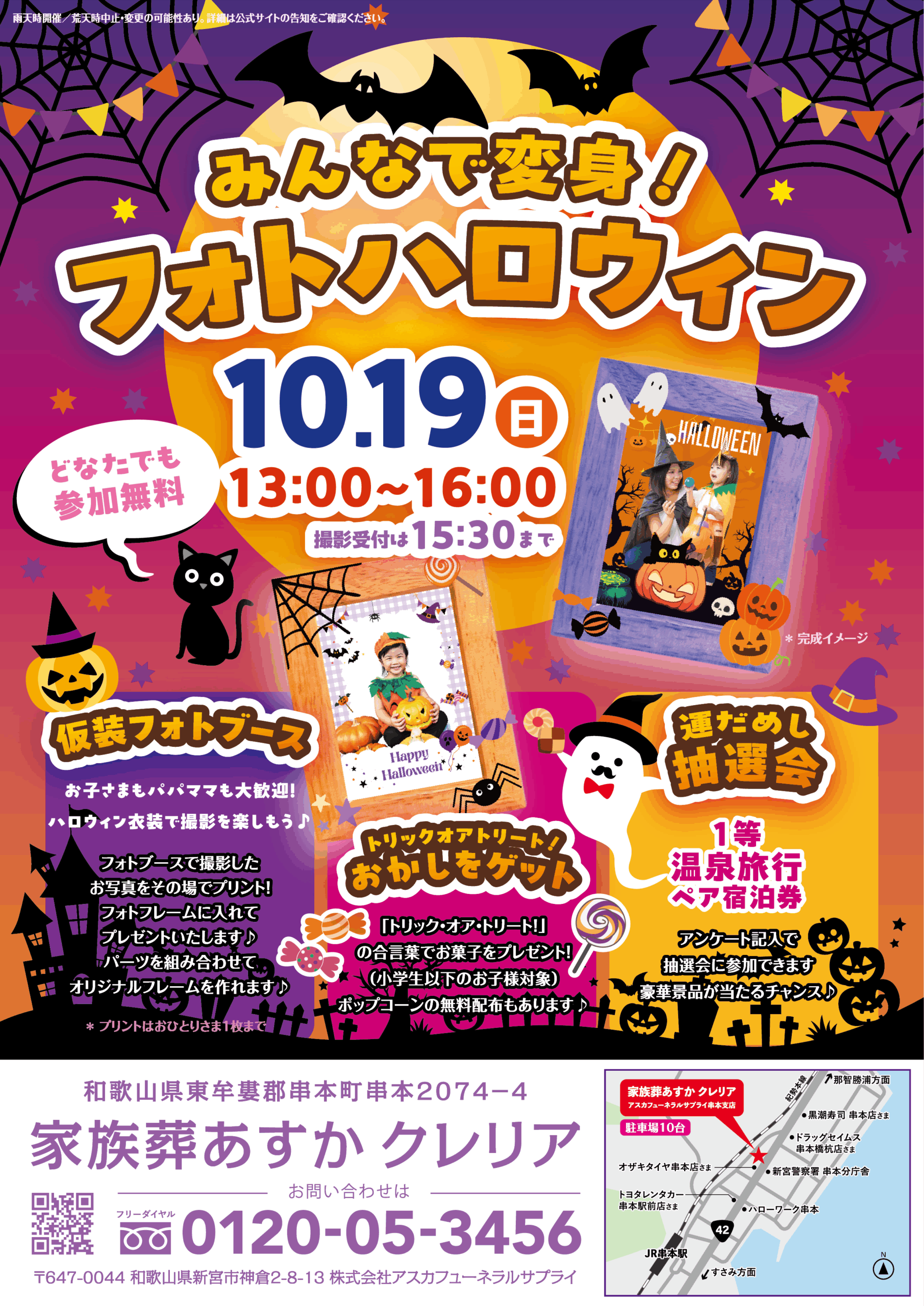 2025年10月19日(日)に、串本町串本の「家族葬あすか クレリア」にてハロウィンイベントを開催いたします。