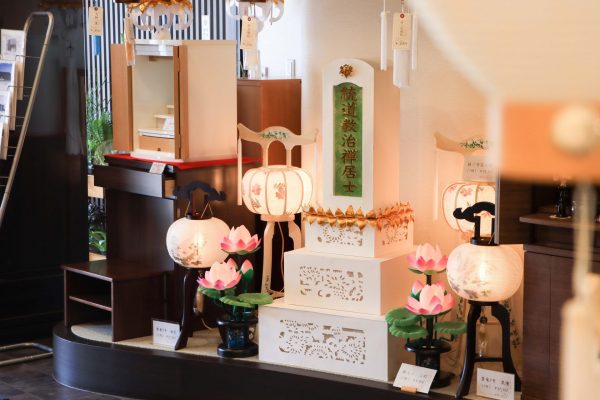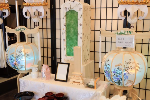 本社事務所併設の仏事サロン 明日ノ空にて、盆提灯や灯籠など初盆・お盆用品の展示販売がはじまりました。
