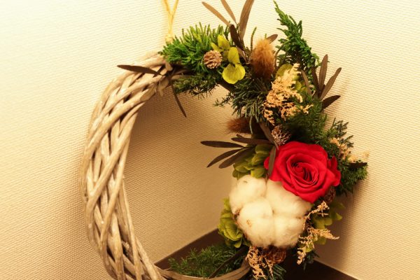 さて、このたび10月17日(日)に、那智勝浦町朝日の弊社斎場「家族葬あすか東花園」にて、フラワーアレンジメント教室「クリスマスアレンジpart.1リース作り」を開催いたします。