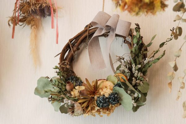 このたび11月23日(火)祝日に、三重県御浜町阿田和の弊社斎場「家族葬あすか ラプラージュ」にて、『ドライフラワーで簡単リース作り』を開催いたします。